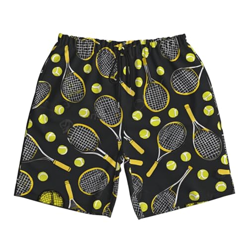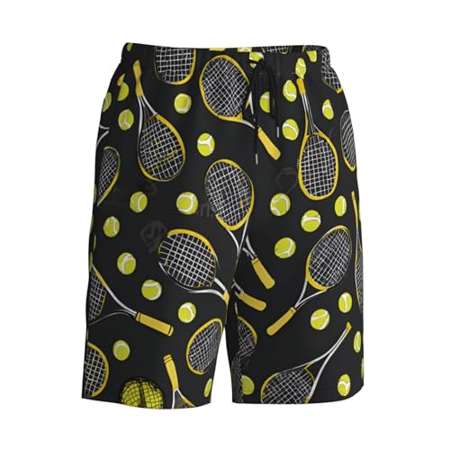 Funny Tennis Racquets and Tennis Balls Print Men's Beach Pants Lightweight prompt-Dry Swim Pants with Mesh Lining for Men