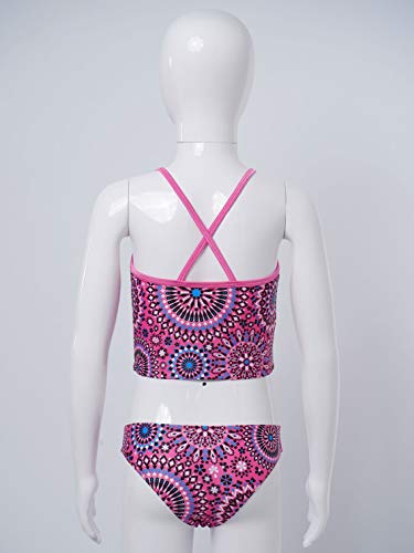 Kaerm Kids Girls Floral Print Swimsuit Tankini Bathing Suit Halter Crisscross Tops Bottoms Boyshort Swimwear 6