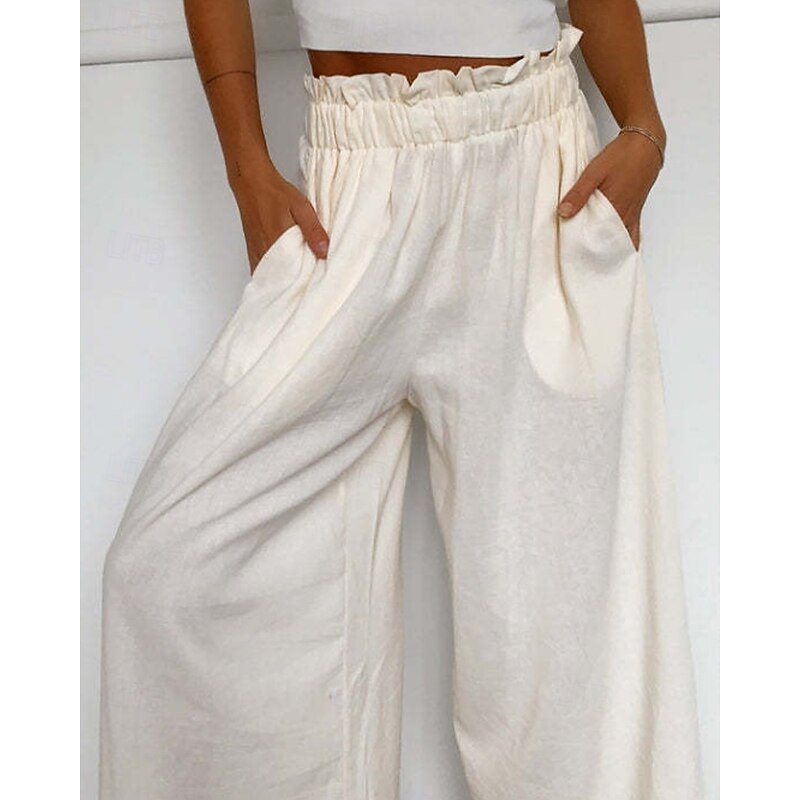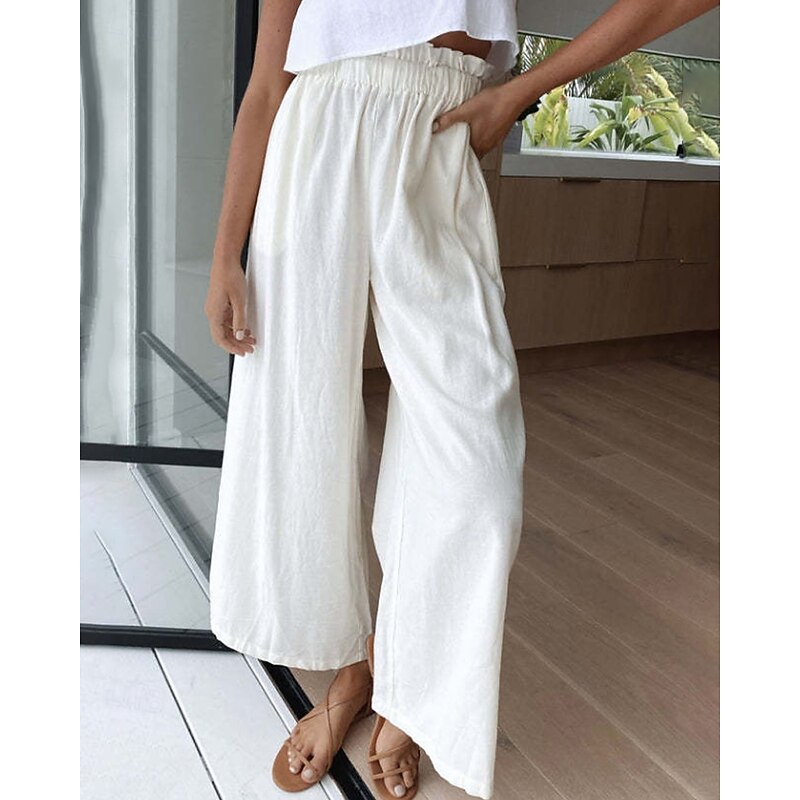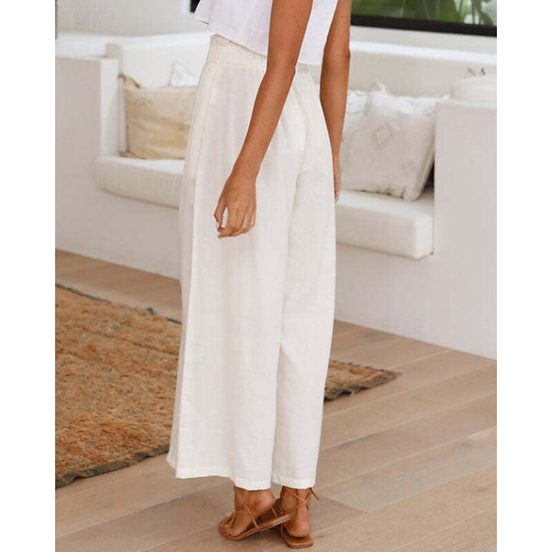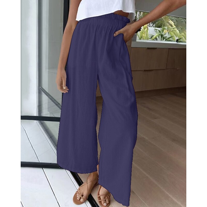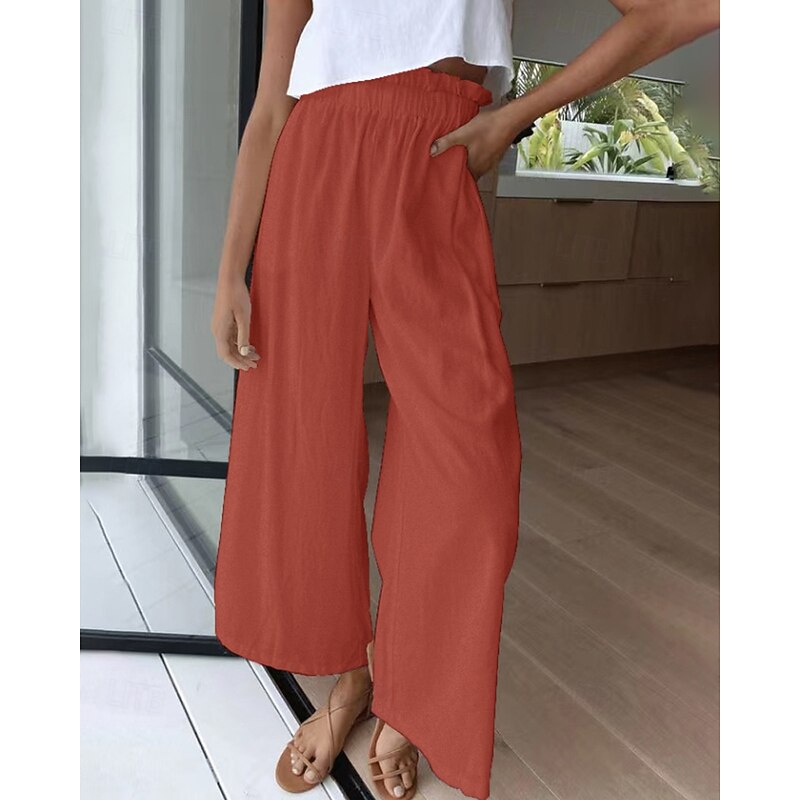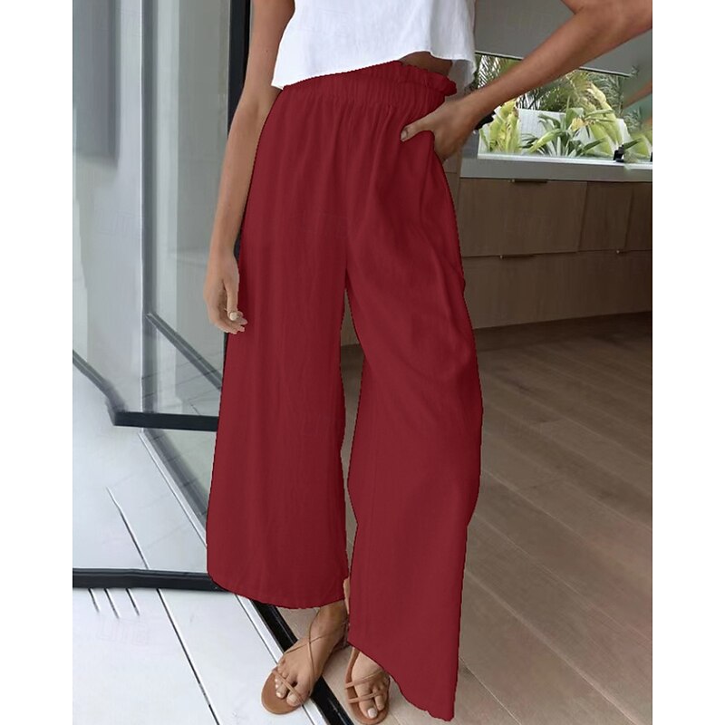 More information about Women's Wide Leg Slacks Streetwear Casual Full Length Natural Plain Elastic Waist Comfortable Holiday Daily Wear Weekend claret Rust Navy White Fall Regular Fit
