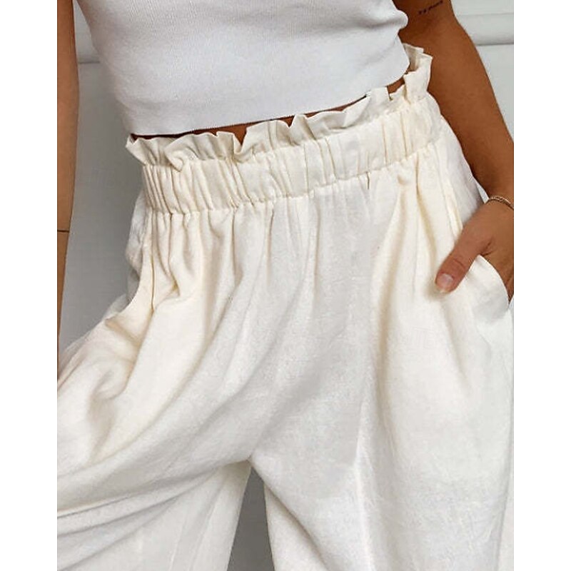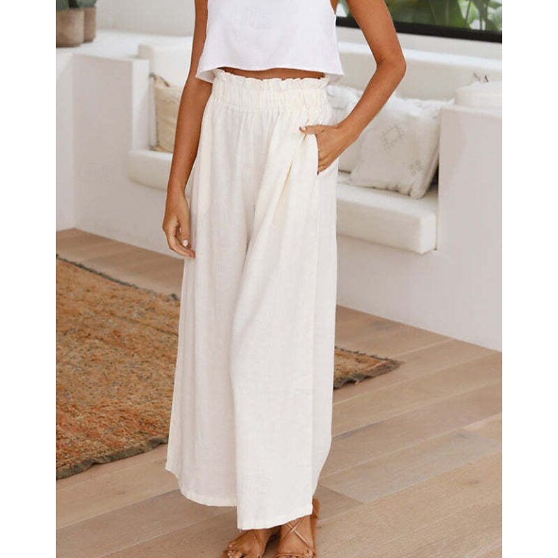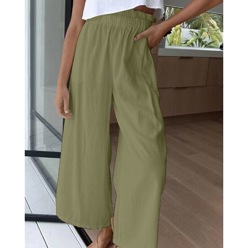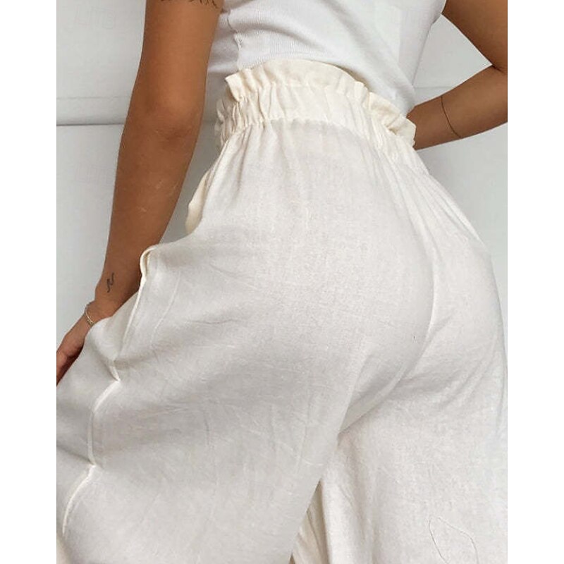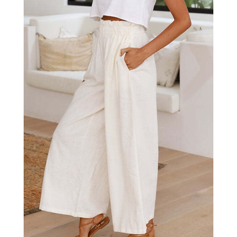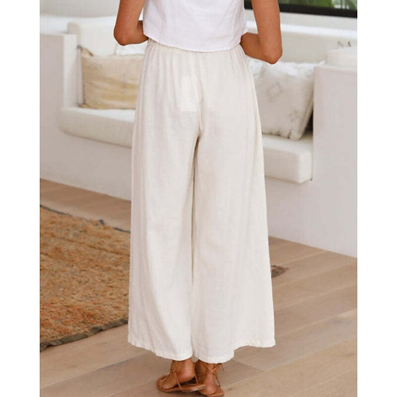 More information about Women's Wide Leg Slacks Streetwear Casual Full Length Natural Plain Elastic Waist Comfortable Holiday Daily Wear Weekend claret Rust Navy White Fall Regular Fit