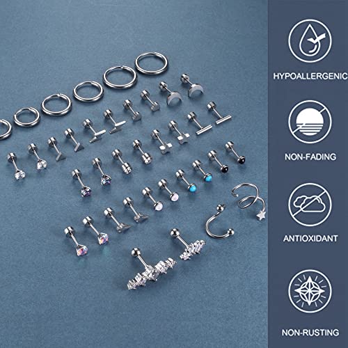 • 【Cartilage Earrings for Women Multiple Piercing】Hypoallergenic Flatback Earrings Set Is Suitable For Women And Men, Abundant Quantity And Various Styles, Stainless Steel Tiny Stud Earrings Set Is The Ideal Gift For Friend.