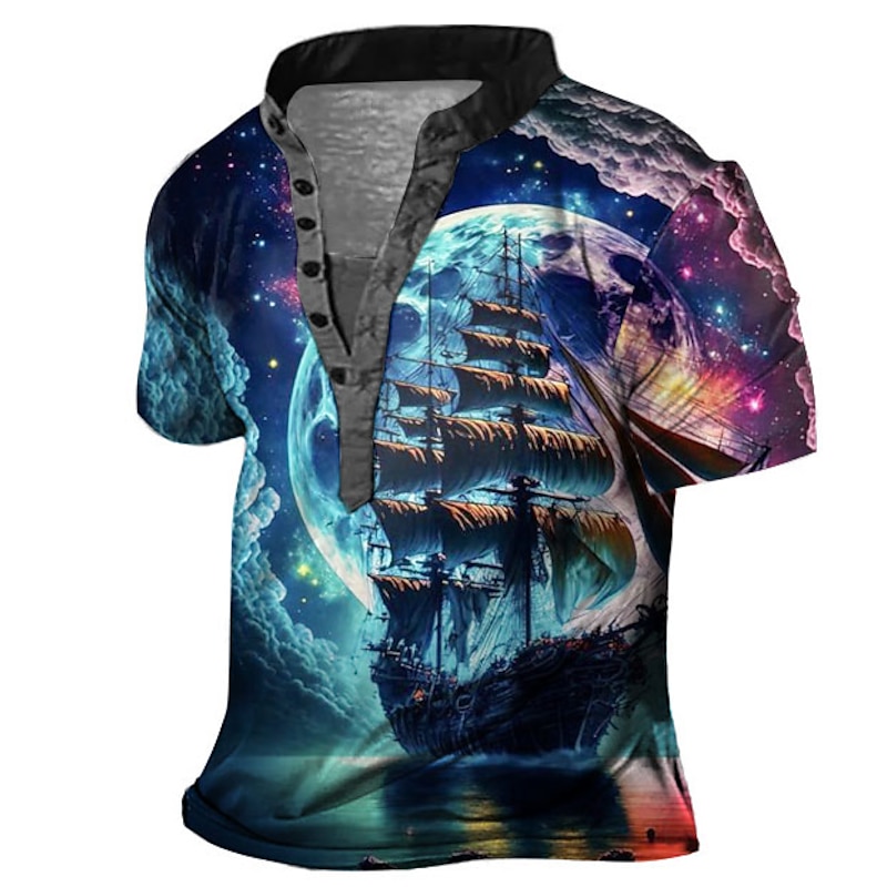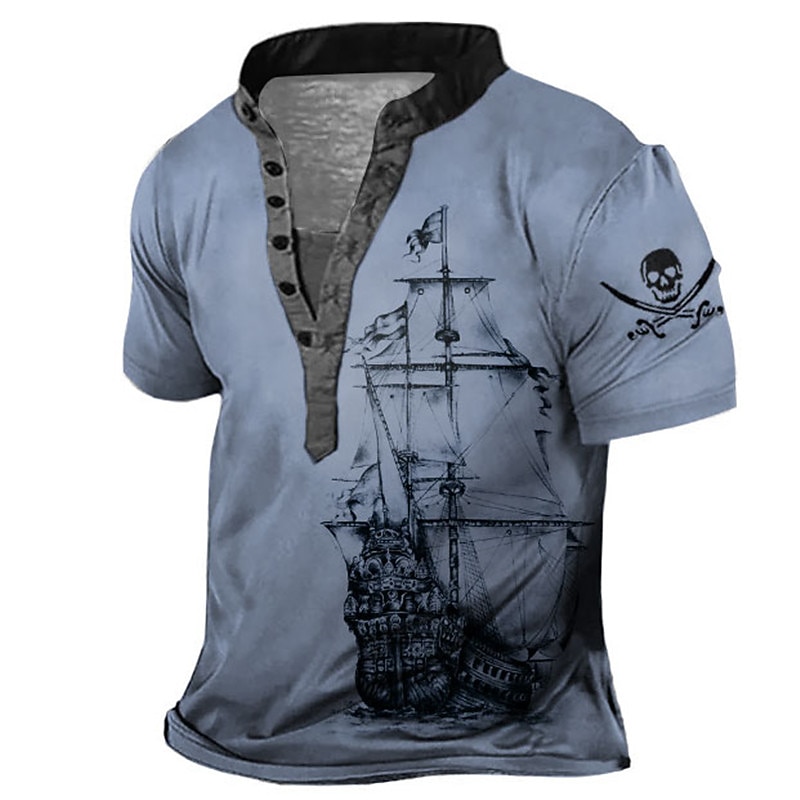 More information about Men's Graphic Ship Henley Shirt Short Sleeve 3D Print Fashion Casual Comfortable Outdoor Daily Going out Summer Dark Brown Pink Red Navy Blue Blue Henley Henley T-Shirt