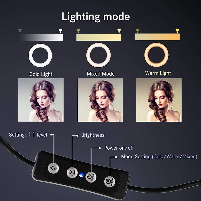 More information about LED Ring Light Lamp 6" 15cm Desktop Tripod Stand for YouTube Video Makeup Tiktok Mini LED Camera Light with Cell Phone Holder with 3 Light Modes & 11 Brightness Level