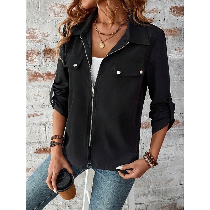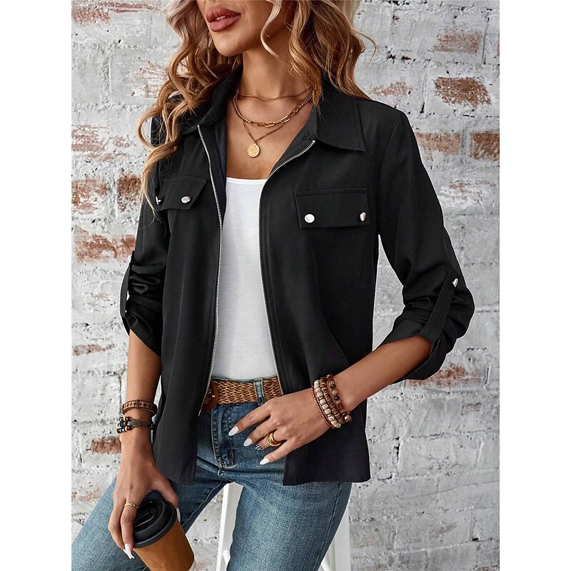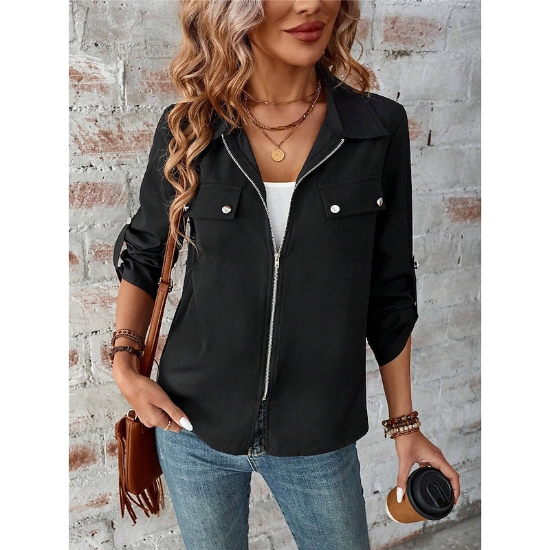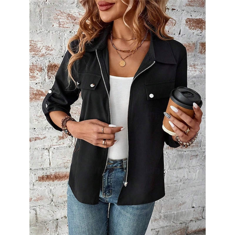 Highlights [Fabric] : Crafted from premium polyester, this women's winter coat offers micro-elasticity, ensuring a comfortable fit that is both thermal warm and breathable. The high-quality material provides the perfect balance between functionality and style, making it suitable for fall and winter wear. [Fit] : Designed with a regular fit, this jacket provides ample room for layering without compromising on style. The short outerwear length offers an on-trend look that pairs beautifully with a variety of outfits. [Design Highlights] : The coat features a chic turndown neckline and a full front zipper placket for ease and convenience. It is designed with practical elements such as two front pockets, adding utility while maintaining a sleek, plain pattern. The sleeves can be adjusted with buttoned tabs, allowing for versatility in styling. [Occasions] : Ideal for daily wear, street outings, and outdoor activities, this casual yet stylish jacket is a versatile addition to any winter wardrobe. Its lightweight fabric and warm construction make it a go-to choice for those chilly days outside. [Size Range] : Available in a range of sizes from S to 2XL, ensuring a suitable fit for various body types.
