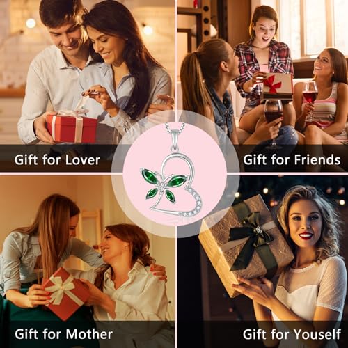 925 Sterling Silver Butterfly Birthstone Heart Necklace for Women 5A Cubic Zirconia Pendant Jewelry for Mother's Day Valentine Birthday Gifts for Her