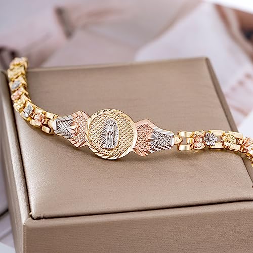 • ❤.【Featured Design】Virgin mary bracelet designed, three color gold plated flower design, exquisite bracelet, stylish and elegant design, durable, nickel and lead free. It comes in a beautiful gift box and is the perfect bracelet for women or girls.