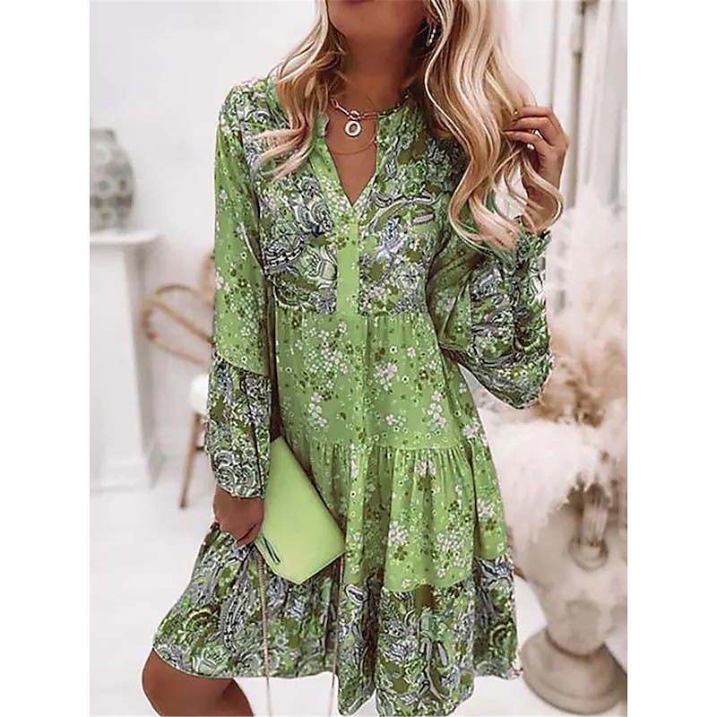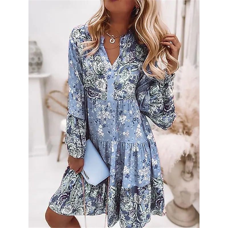 More information about Women's Mini Dress Casual Dress Boho Dress Spring Dress Vacation Streetwear Vacation Street Holiday Regular Fit Floral Long Sleeve Split Neck Pink Blue Green Summer Spring