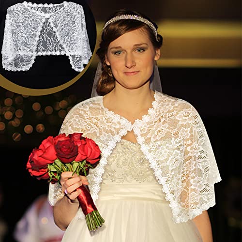 HOT ! CRASPIRE Lace Wedding Shawl Wrap White Women Evening Cape Flower Lace Bridal Shoulder Covers for Dress Prom Party Costume Weddings Bridal Bridesmaids