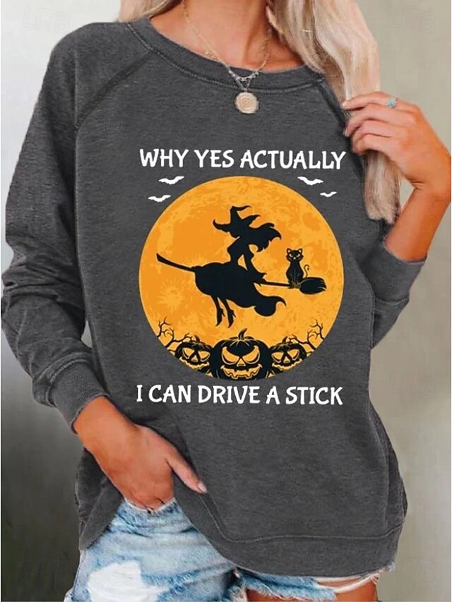 More information about Halloween Women's Sweatshirts Graphic Fashion Casual Long Sleeve Crew Neck Regular Tops Casual Print Black White Light Grey Dark Gray Summer Spring Fall