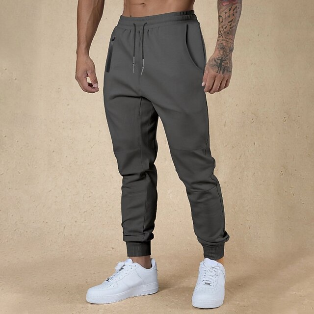 HOT ! Men's Sweatpants Joggers Trousers Casual Pants Running Pants Pocket Elastic Waist Drawstring Plain Comfort Full Length Sports Outdoor Daily Gym Simple Classic Style Black Blue Stretchy