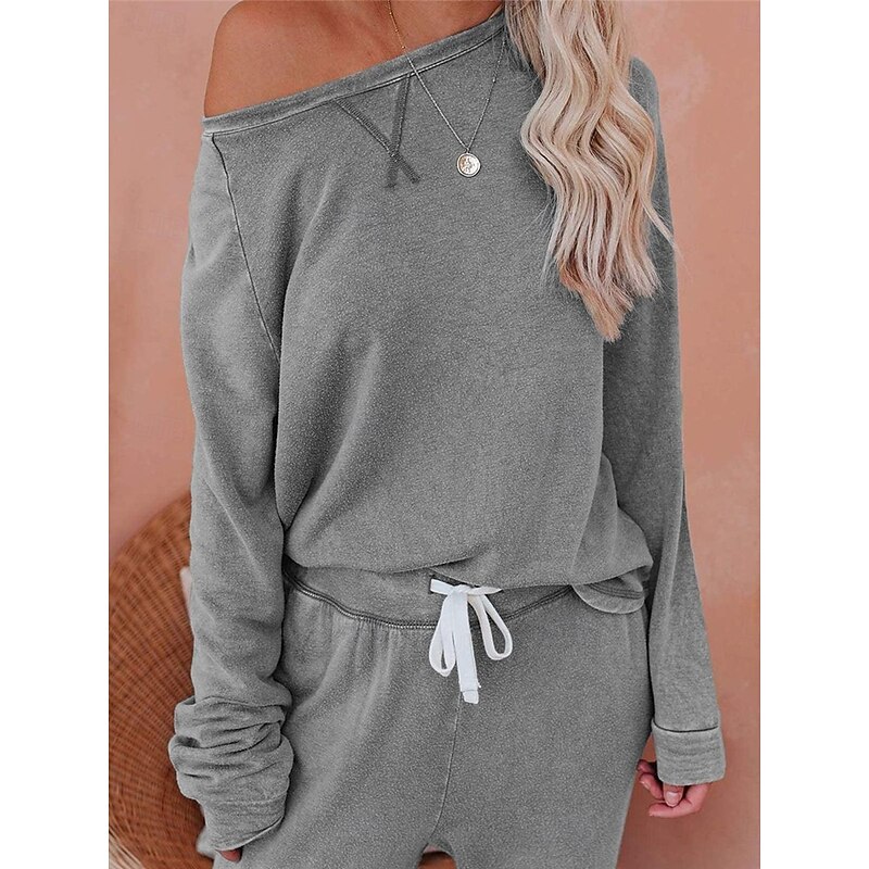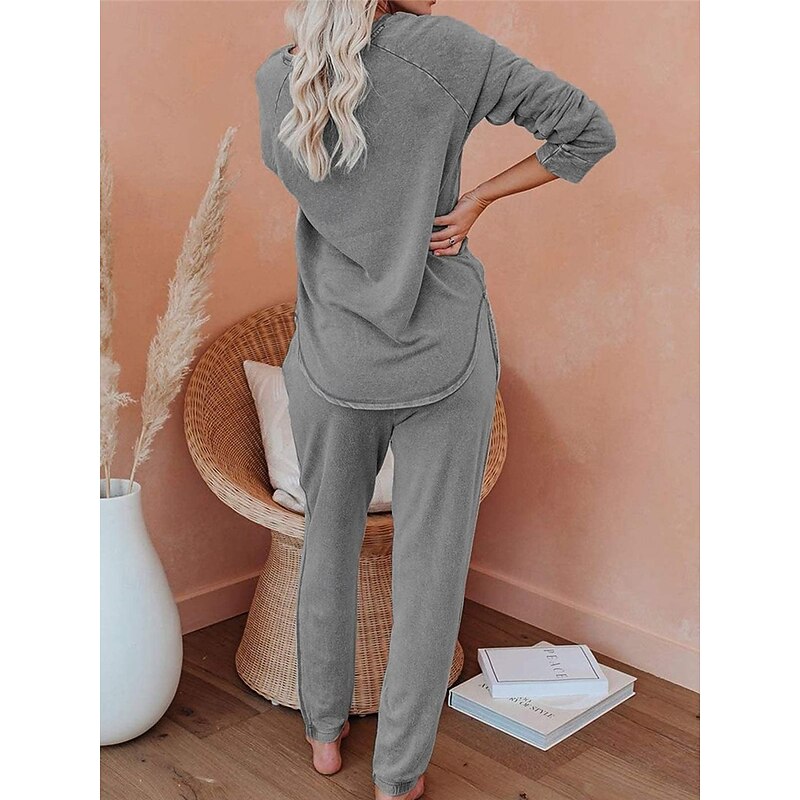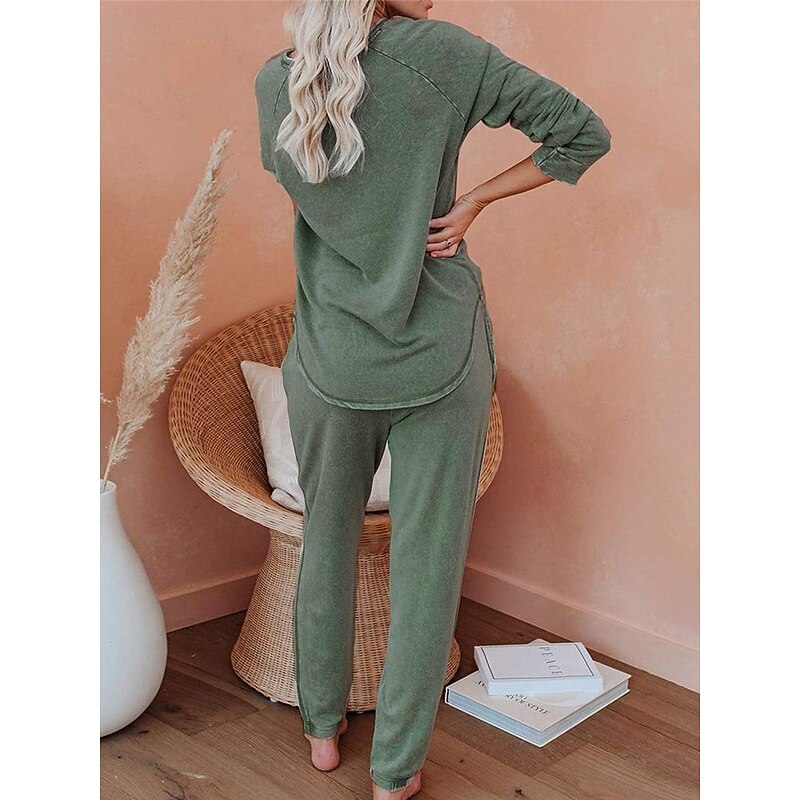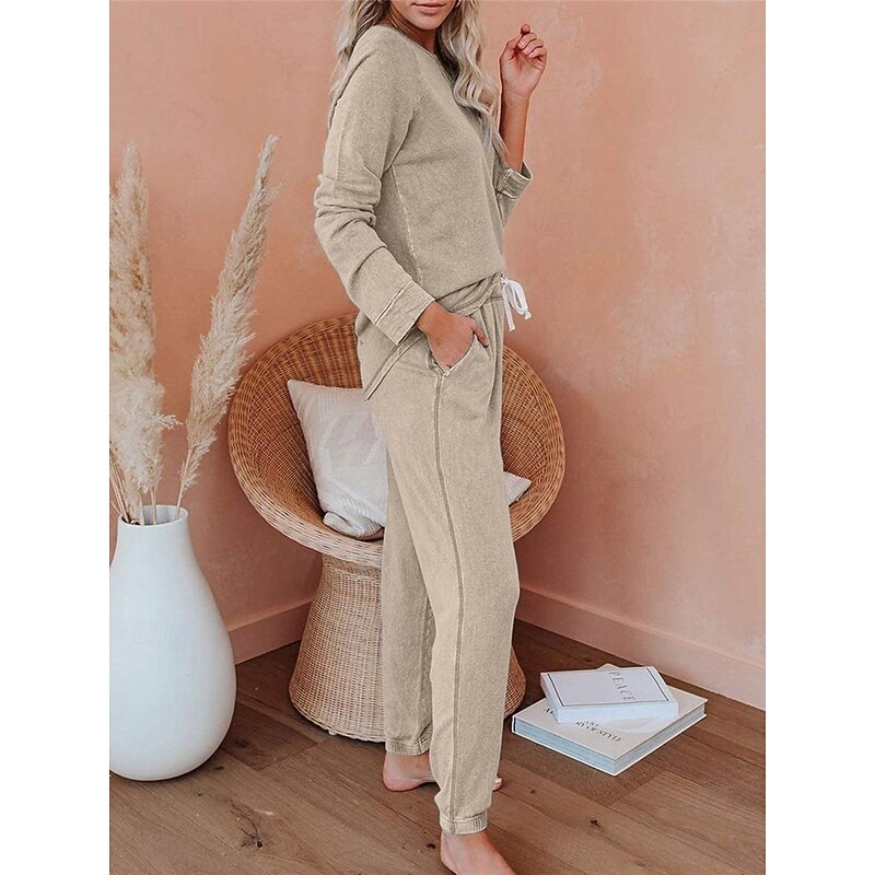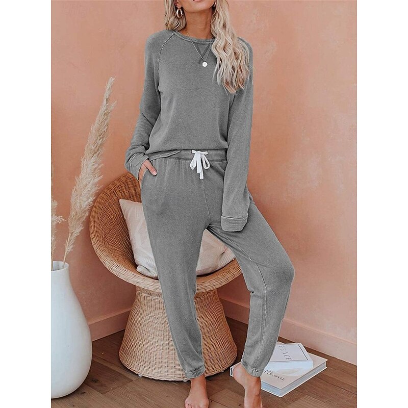 More information about Women's Pajamas Sets Pure Color Fashion Basic Comfort Home Daily Bed Breathable Crew Neck Long Sleeve Pant Pocket Elastic Waist Fall Winter Home Outfits