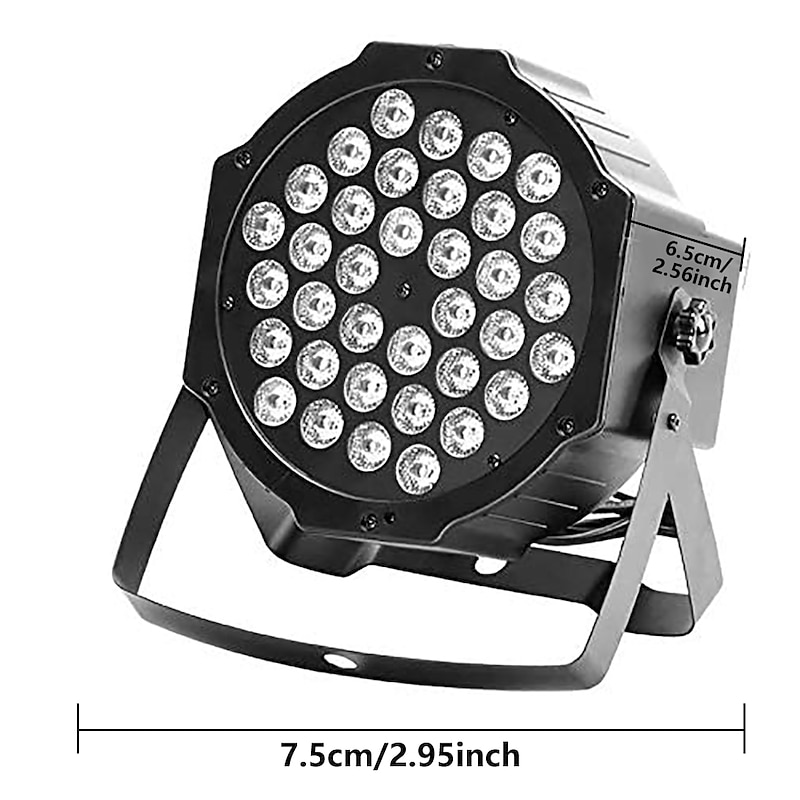 Highlights - Powerful 36 LEDs x 2 watts UV bulb for a stunning atmosphere - Multiple modes including Master/Slave, DMX 512, Sound Activated, Strobe, and Auto - Wireless remote control for easy operation - 360 degrees bracket allows easy placement anywhere - Ideal for various events such as weddings, parties, theaters, and more