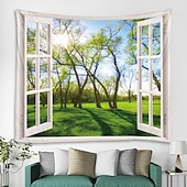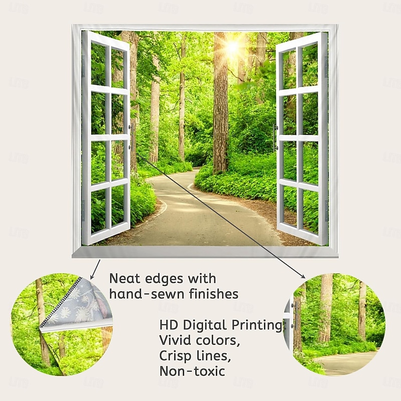 More information about Window Landscape Wall Tapestry Art Decor Blanket Curtain Picnic Tablecloth Hanging Home Bedroom Living Room Dorm Decoration Polyester Forest