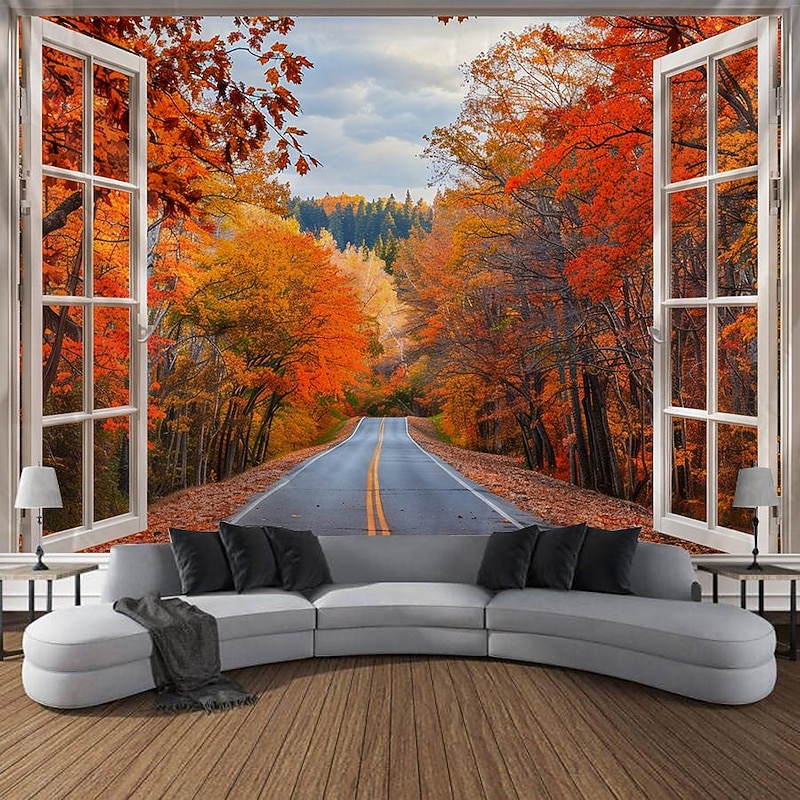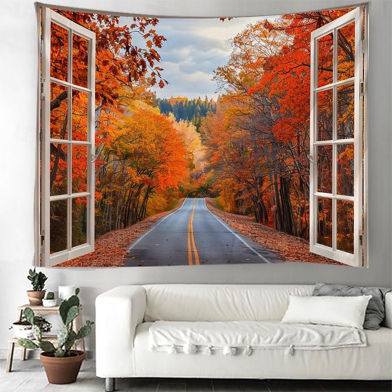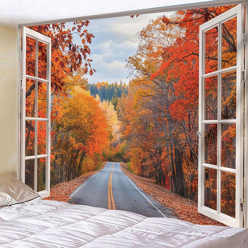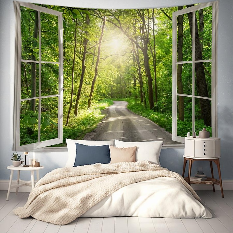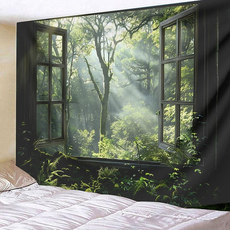 HOT ! Window Landscape Wall Tapestry Art Decor Blanket Curtain Picnic Tablecloth Hanging Home Bedroom Living Room Dorm Decoration Polyester Forest