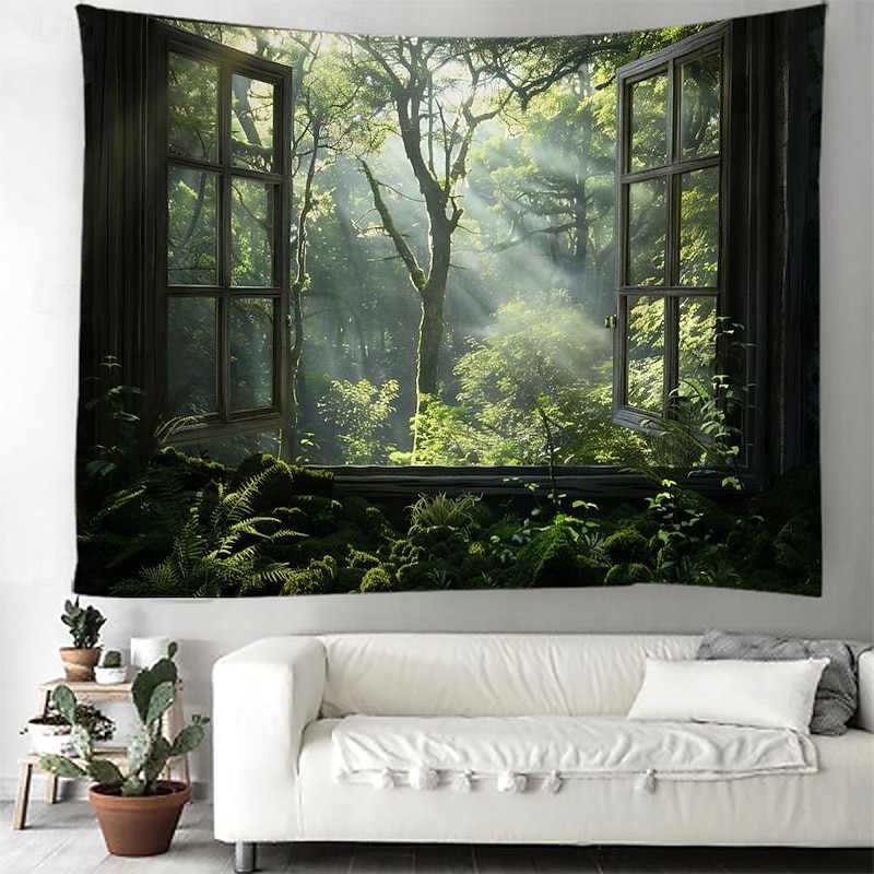 Window Landscape Wall Tapestry Art Decor Blanket Curtain Picnic Tablecloth Hanging Home Bedroom Living Room Dorm Decoration Polyester Forest 24