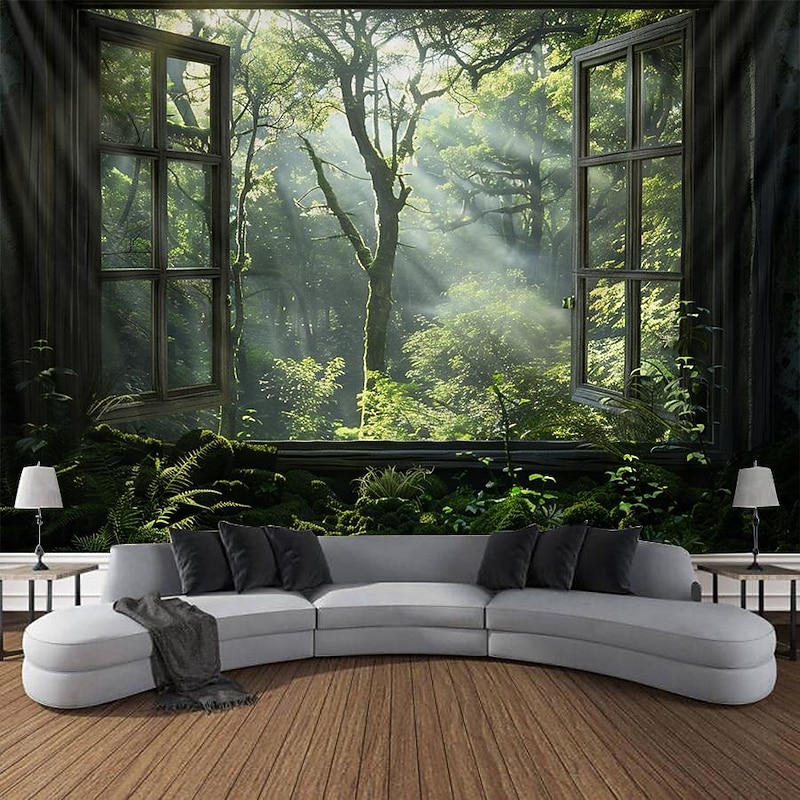 Window Landscape Wall Tapestry Art Decor Blanket Curtain Picnic Tablecloth Hanging Home Bedroom Living Room Dorm Decoration Polyester Forest 7
