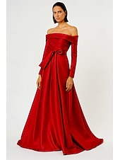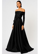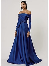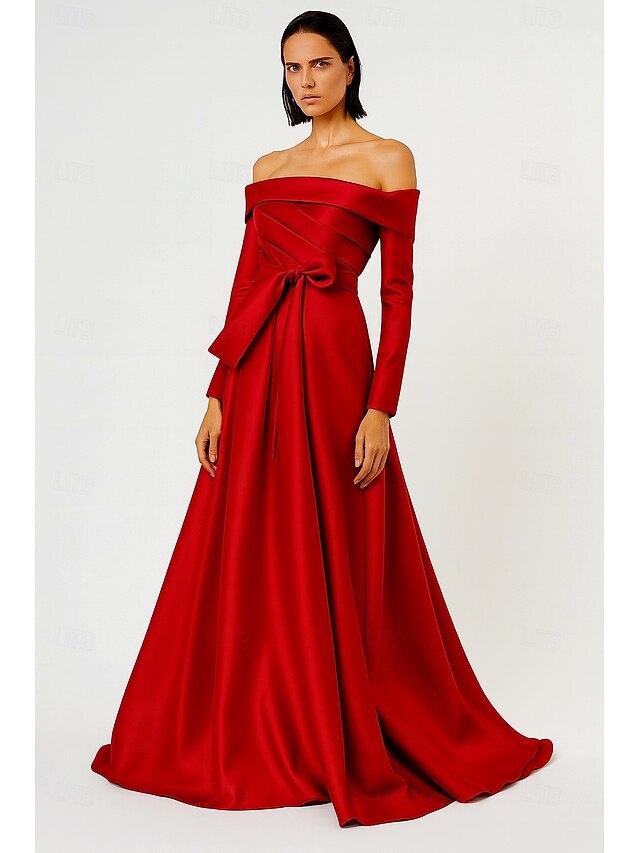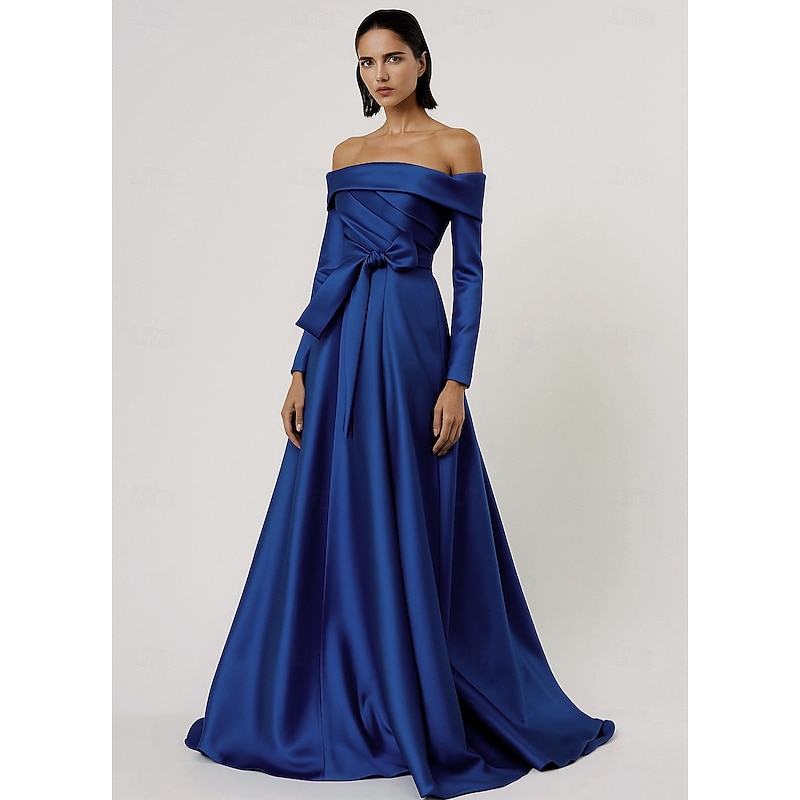 $134.99 - Blue Red Black A-Line Evening Gown Elegant Formal Dress Formal Wedding Floor Length Long Sleeve Off Shoulder Pocket Satin with Bow(s) 2025 2025. Shop for cheap A-Line Evening Dresses online? Buy at lightinthebox.com on sale today!