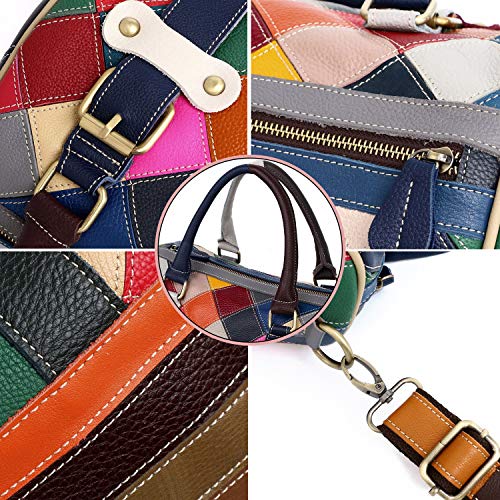 • 💝 Material: 100% genuine cow leather middle boston bag.Full Unique 3D color stripe stitching design,Perfect middle size tote/handbag with plenty of room. Multicolored yet stylish,detachable shoulder strap.