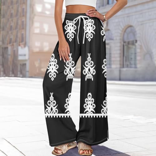 HOT ! Summer Palazzo Pants for Women, High Waisted Wide Leg Floral Flowy Beach Travel Trousers with Pockets