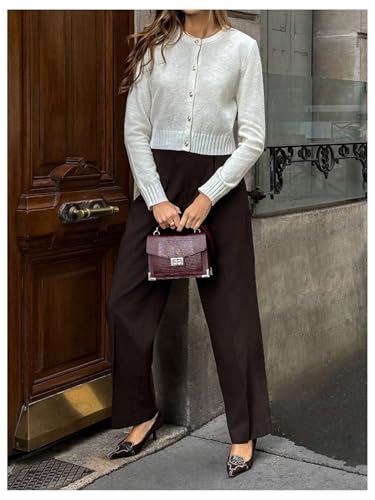 HOT ! SweatyRocks Women's Button Up Cropped Cardigan Sweater Crewneck Long Sleeve Knit Outwear