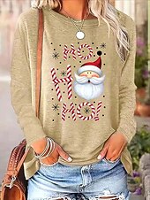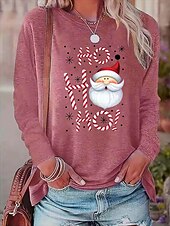 More information about Christmas Women's T Shirt Graphic Santa Claus Vintage Fashion Stylish Long Sleeve Crew Neck Regular Tops Daily Weekend Print Black Pink Blue Beige Spring Fall Winter