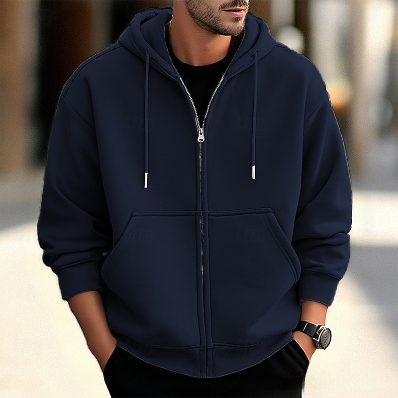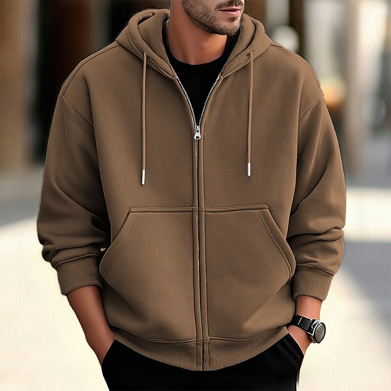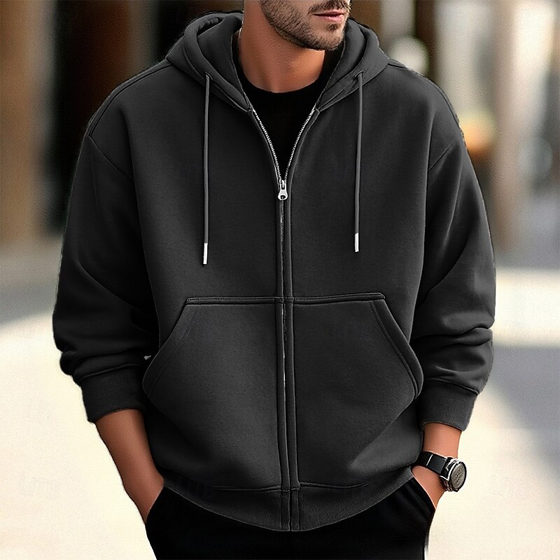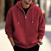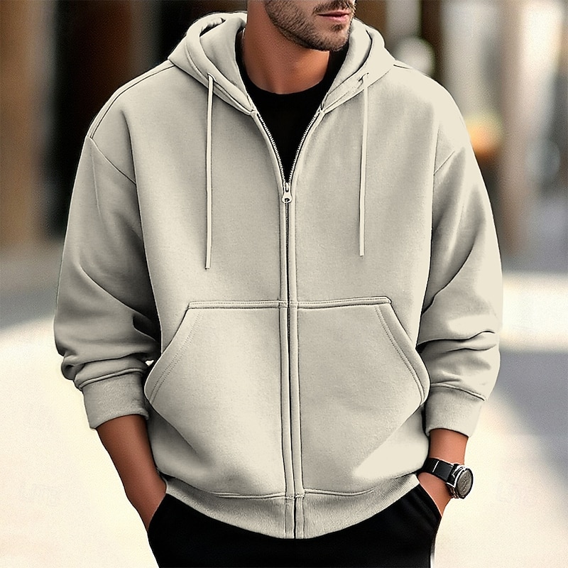 More information about Men's Hoodie Full Zip Hoodie Apricot Gray 2# Black White Wine Hooded Plain Zip Up Pocket Sports & Outdoor Daily Holiday Polyester Streetwear Basic Casual Spring Fall Clothing Apparel Hoodies