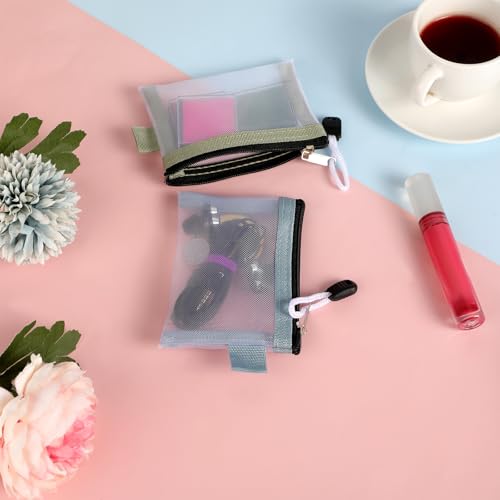 9 Pack Small Zipper Pouch Mini Zipper Mesh Bags Nylon Makeup Storage Bags 3 X 4.3 Inch Card Key Holder Change Purse Portable Travel Cosmetic Pouch for Lipstick Earphone 5