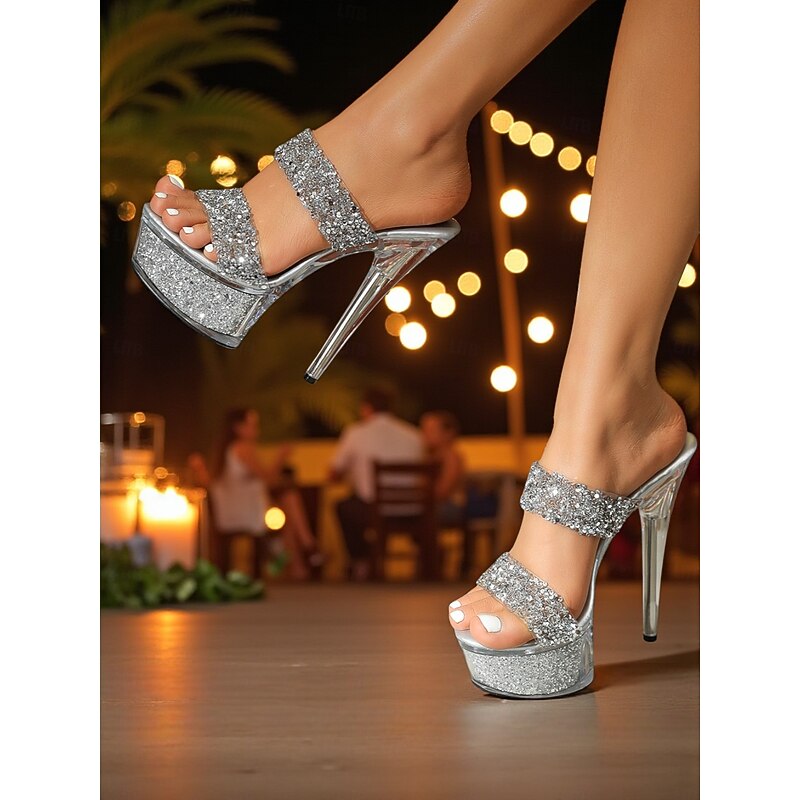 More information about Women's Rhinestone Platform High Heel Mules - Glitter Peep Toe Party Sandals for Nightlife and Clubbing