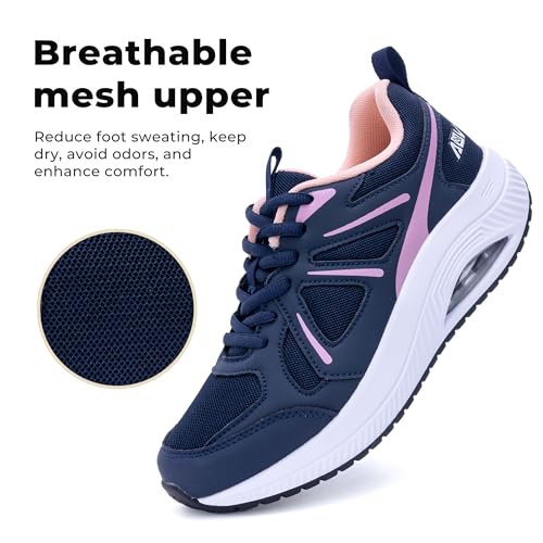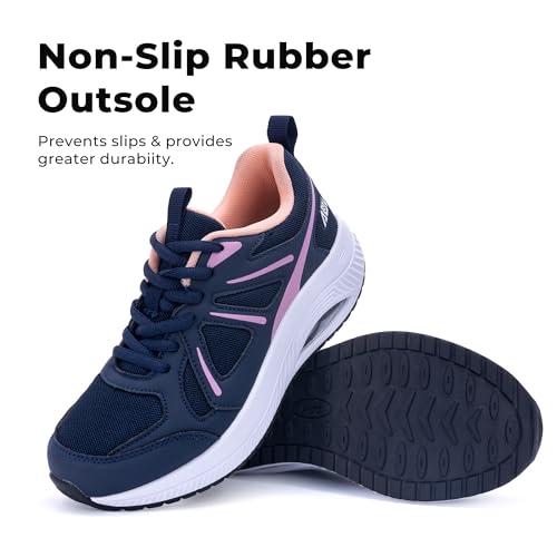 • Arch Support Walking Shoes for Women: The non-slip rubber outsole provides excellent traction and stability for all surfaces. The air cushion in the shoe make you feel as if you are walking on air.