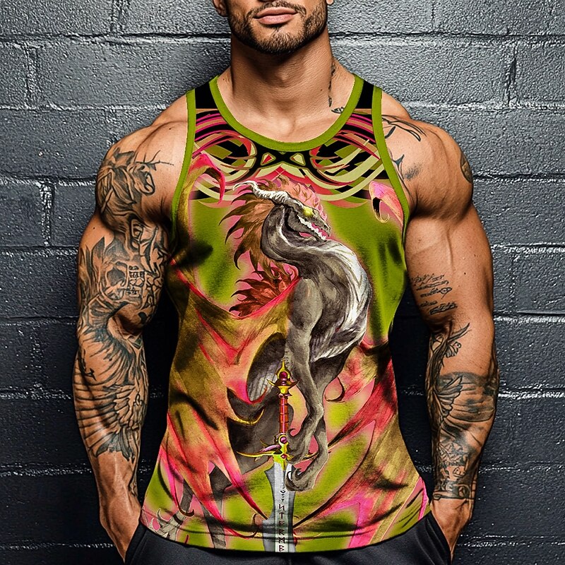 Dragonsword STORMBLADE Ruth Thompson Men's Dragon Vest Top Undershirt Sleeveless T shirt 3D Print Crew Neck Shirt Fashion Exaggerated Street Casual Daily Blue Summer Spring Clothing Apparel S M L XL X 2