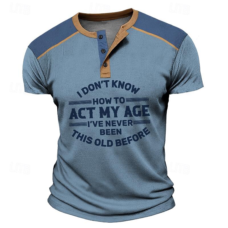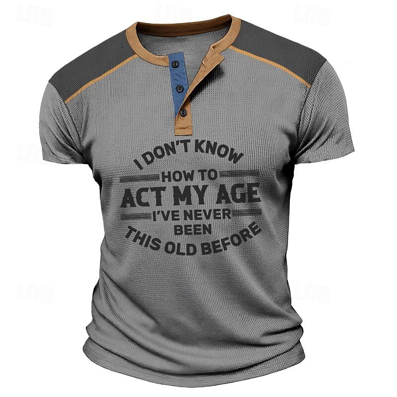 More information about Funny Slang Act My Age Men's Casual 3D Print Waffle T shirt Tee Henley Shirt Sports Outdoor Casual Holiday T shirt Blue Green Khaki Short Sleeve Henley Shirt Spring & Summer Clothing