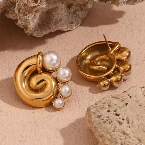 Chic & Chunky 18k Gold Plated Stainless Steel Earrings for Women - Stylish Hoop, Stud & Drop Designs with Pearls or Cubic Zirconia - Fashionable Accessories for All Occasions 3