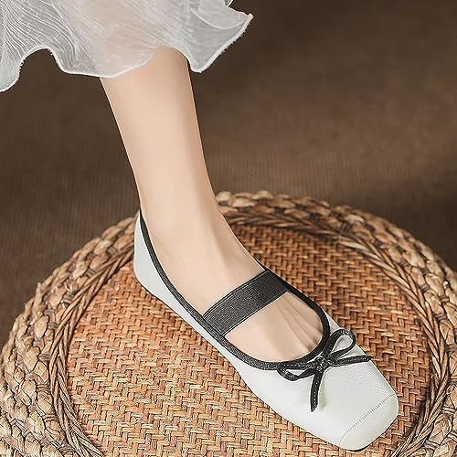 INEELUYI Bowtie Ballets Flats for Women Square Toe Slip on Comfortable Dress Ballerina Flats Mary Jane Shoes 7