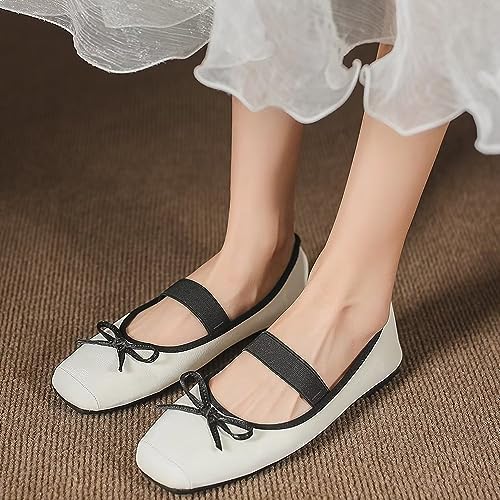 INEELUYI Bowtie Ballets Flats for Women Square Toe Slip on Comfortable Dress Ballerina Flats Mary Jane Shoes 6