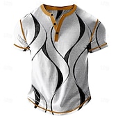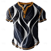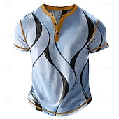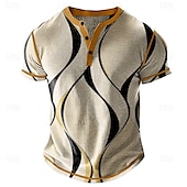 More information about Men's Graphic Abstract Henley Shirt Waffle T Shirt Short Sleeve Daily Contemporary Retro Vintage Sports Outdoor Casual Holiday Spring & Summer All Seasons Navy Blue Khaki Light Grey Henley Henley