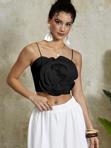 HOT ! OYOANGLE Women's 3D Floral Cami Crop Tops Sleeveless Backless Summer Going Out Tops Vacation Party Outfits