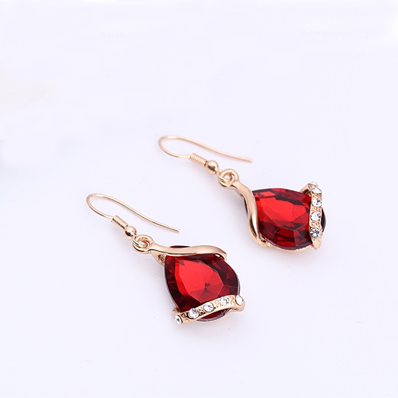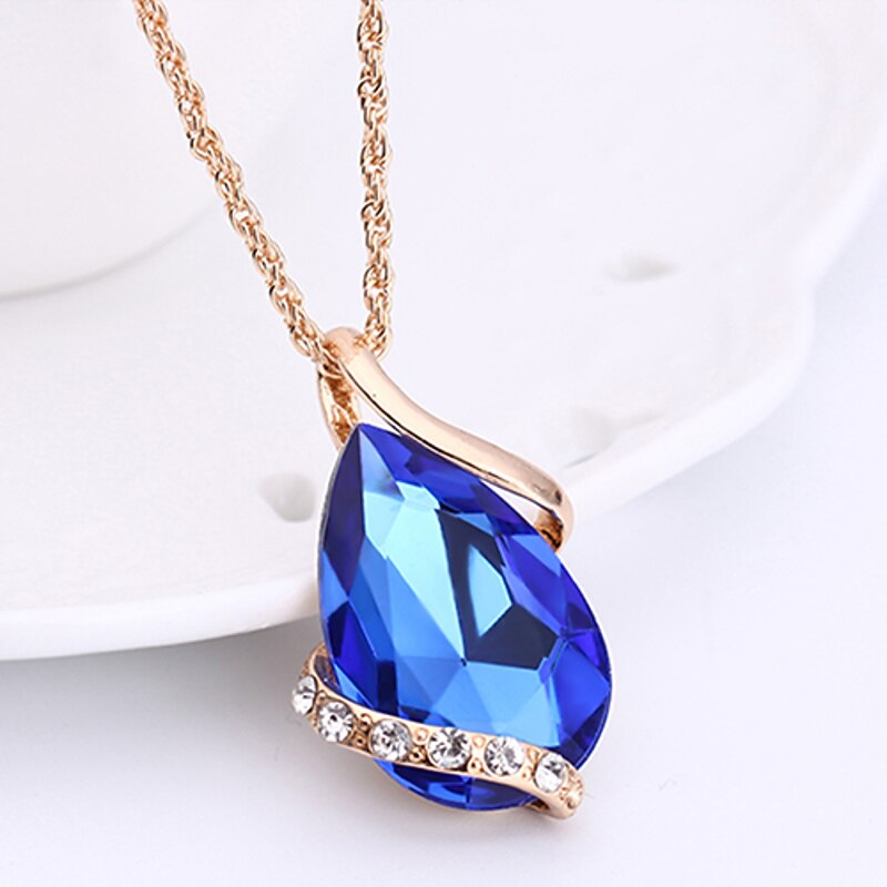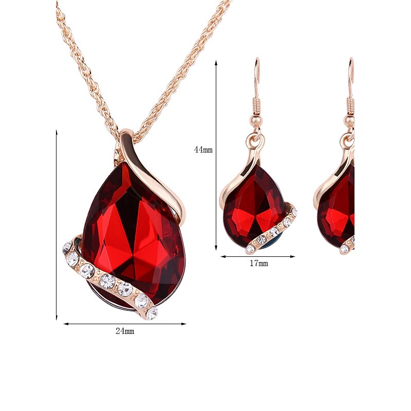 More information about Jewelry Set Drop Earrings For Women's Sapphire Crystal Party Wedding Daily Rose Gold Crystal Rhinestone Pear Cut Solitaire Drop Red Blue Green / Pendant Necklace / Necklace / Earrings / Valentine
