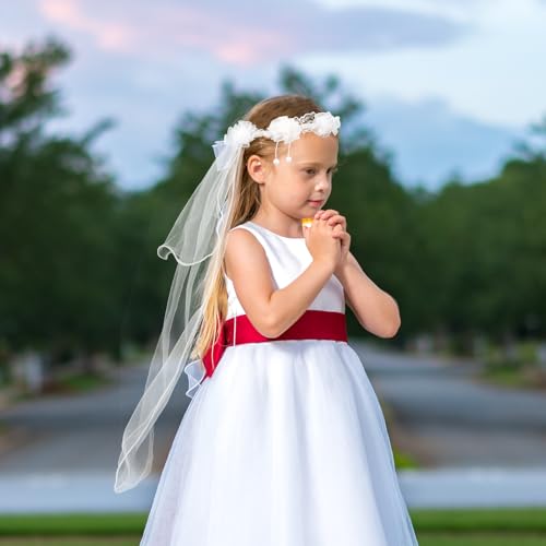 • Easy to Wear: The girls communion veil includes a secure comb attachment, making it easy to wear and remove without disturbing her hairstyle, ensuring a hassle-free experience.
