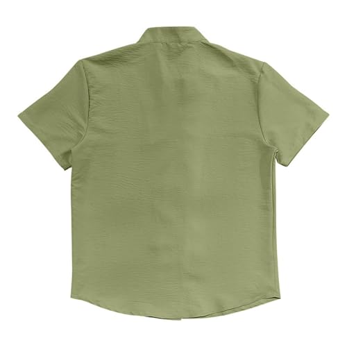 Men's Linen Shirt Short Sleeve Loose Solid Color Stand Collar Tee Buttons V Neck T-Shirts Beach Summer Vacation Shirts 6