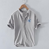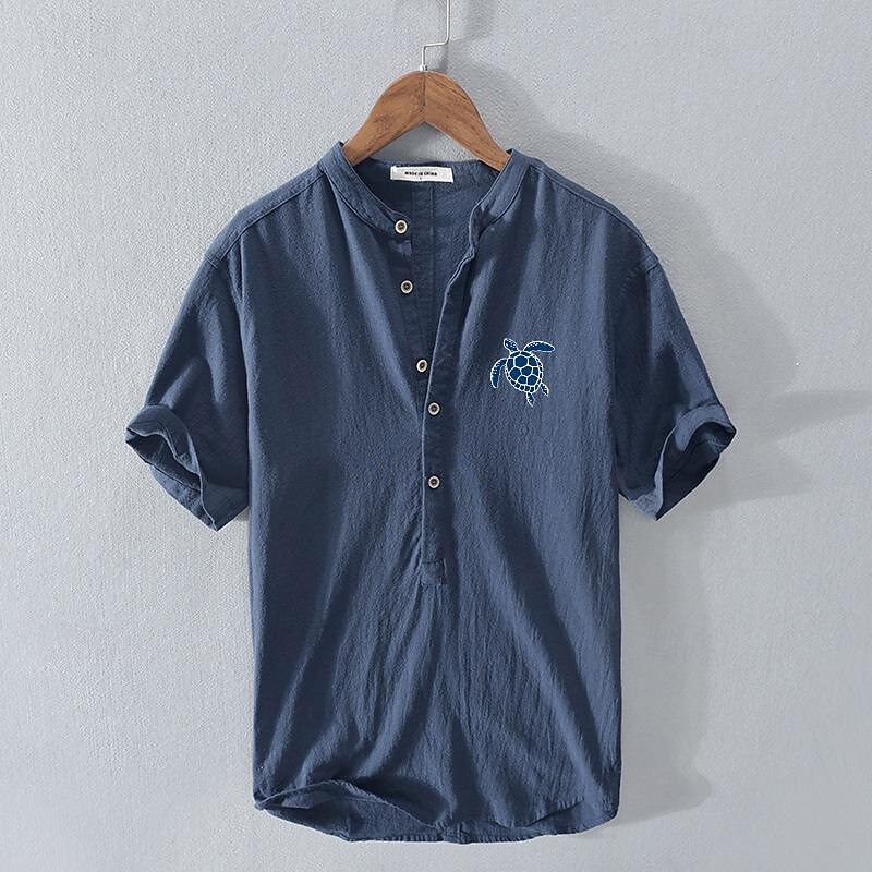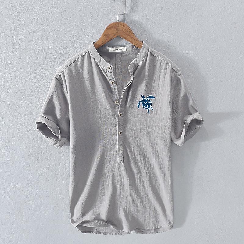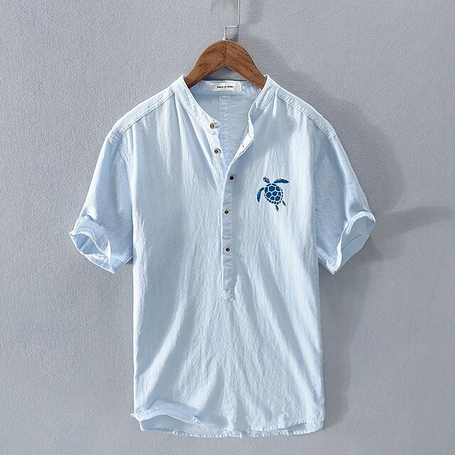 More information about Men's Shirt Linen Shirt Chinese Collar Shirt Mandarin Collar Shirt Casual Shirt Cotton Shirt Turtle Vacation Street Navy Blue Gray Short Sleeve Band Collar Summer Clothing Apparel