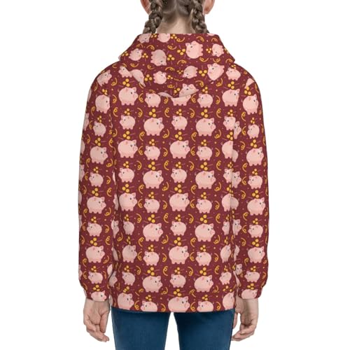 Cute Pig with Coins Kid Hoodies Boys Zip Up Sweatshirts Girls Pullover with Pocket 5