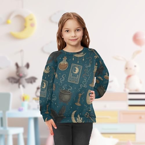 JUNZAN Vintage Witchy Pattern Kids Boys Sweatshirts Hoodies Crewneck Boys Sweat Shirt Athletic 4T 6