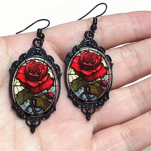 Gothic Rose Cameo Dangle Earrings,Vintage Crystal Glass Flower Drop Earring Dark Punk Style Rose Earring Victorian Mystic Jewelry Accessories for Women