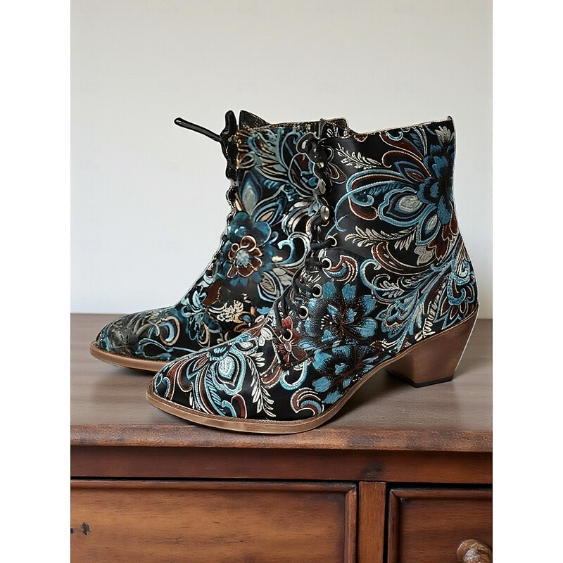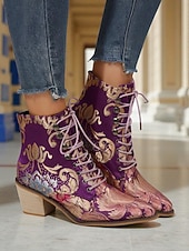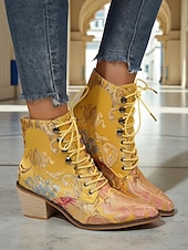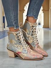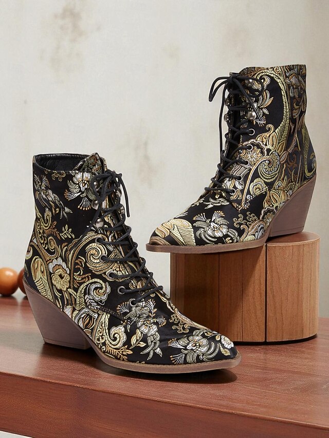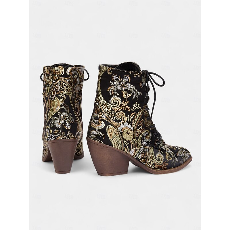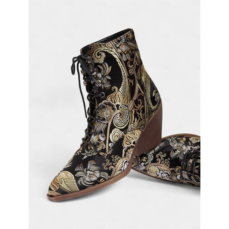 HOT ! Women's Edwardian Vintage Jacquard Lace-Up Ankle Boots - Baroque Floral Wedge Heel Booties for Retro Parties,1900s-1910s Fall Fashion,and Themed Costumes