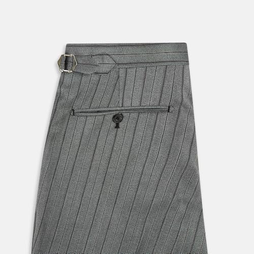 Men's Striped Tuxedo Pants Fit Pleat Front Slim Formal Morning Trousers with Metal Buckle High Waist Dress Pants 5