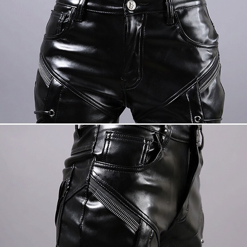 More information about Men's Faux Leather Pants Drawstring Solid Colored Outdoor Sports Full Length Party Casual Fashion Casual Black Red Inelastic
