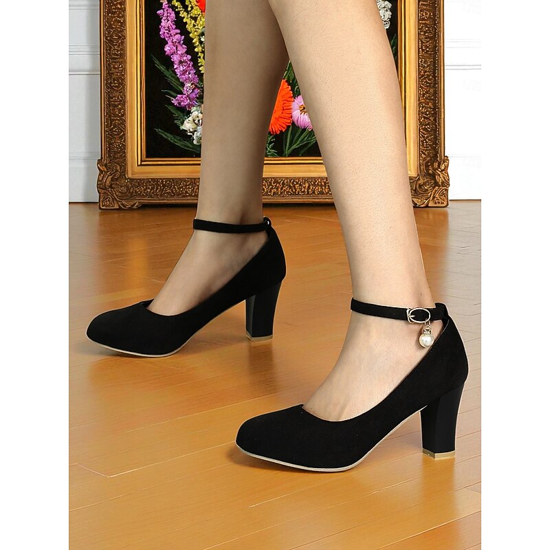 Highlights - Luxurious Faux Suede upper materials - Smooth Synthetic Leather lining materials - Stylish Buckle embellishment - Comfortable Chunky Heel for stability - Classic Round Toe shape - Durable Rubber outsole materials