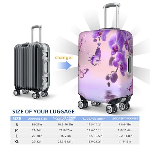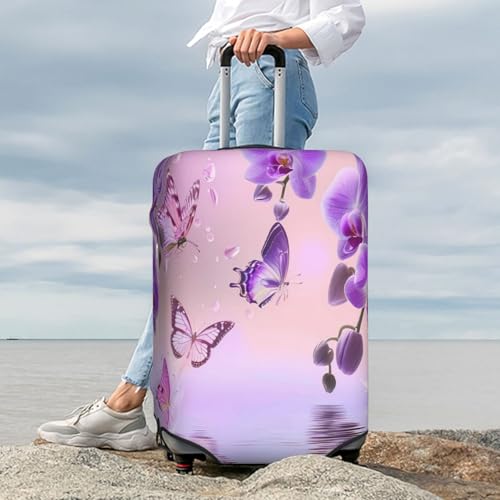 Purple Orchid Butterfly Travel Luggage Cover Elastic Suitcase Covers Washable Anti Scratch Luggage Dust Covers Protector, Fits 22-24 inch Luggage, M