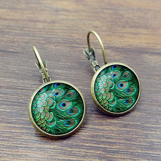 Highlights [Fabric and Material] : Crafted from durable and lightweight alloy, these earrings ensure comfortable, all-day wear. The peacock feather design is encased in a round glass cabochon, bringing a touch of sophisticated elegance to any look. [Design and Style] : These chic and modern earrings feature a captivating peacock feather pattern with rich greens, blues, and subtle gold accents, reminiscent of real peacock feathers. The earrings are set in an antique bronze lever-back closure, infusing a vintage charm that pairs beautifully with the vivid, intricate design. [Design Highlights] : The vintage-inspired lever-back closure not only offers easy wearability but also enhances the earrings' overall elegance. The vibrant colors and detailed glass cabochon capture attention, serving as a striking accessory for any fashion-forward individual. [Occasions] : Perfect for daily wear, street outings, and weekend adventures, these earrings add a pop of color to any ensemble. They are an ideal accent for casual settings or to complement a chic holiday look. [Size Details] : Available in one size, these earrings are designed to offer versatility and convenience, making them suitable for a wide range of fashion styles and occasions.