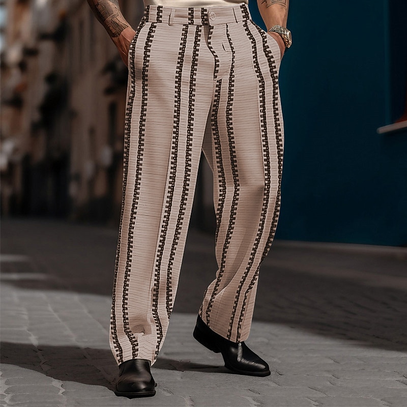 HOT ! Men's Dress Pants Trousers Casual Pants Front Pocket Straight Leg Stripe Comfort Business Daily Holiday Fashion Chic & Modern Black White